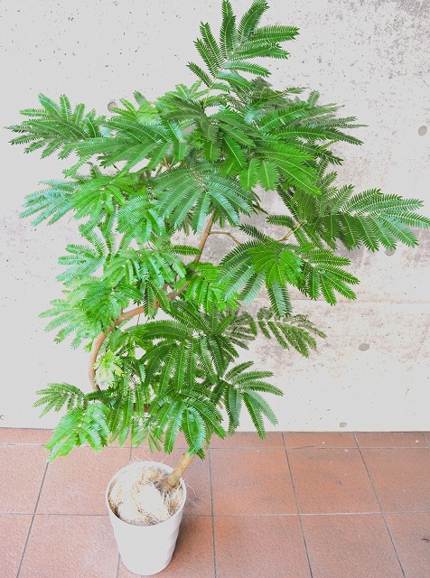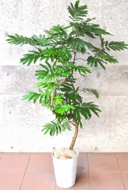 画像は実物商品です。緩やかな曲がりのある樹形のエバーフレッシュです。鉢サイズ:10号、樹脂製鉢植えです。他の画像1、他の画像2、他の画像3。