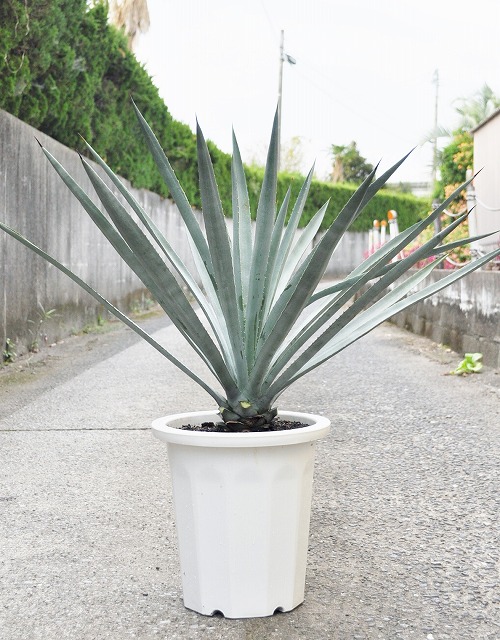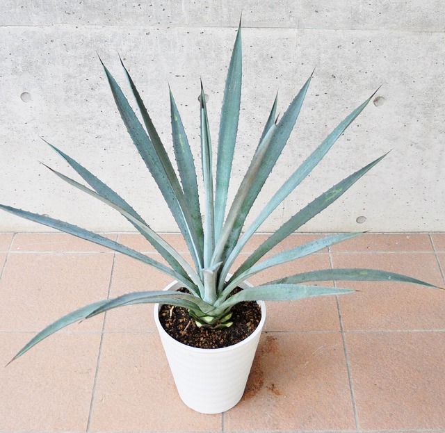 テキーラやアガベシロップの原料となる、アガベ・テキラーナ、7号サイズです。ブルーアガベ、アガベアズール(blue agave 、agave azul)とも呼ばれ、美しいブルーの葉を持ちます。葉は真っすぐ直線的にのび、シャープな雰囲気となります。観葉植物として飾るもよし、暖地なら屋外でそだてることや露地植えも可能です。