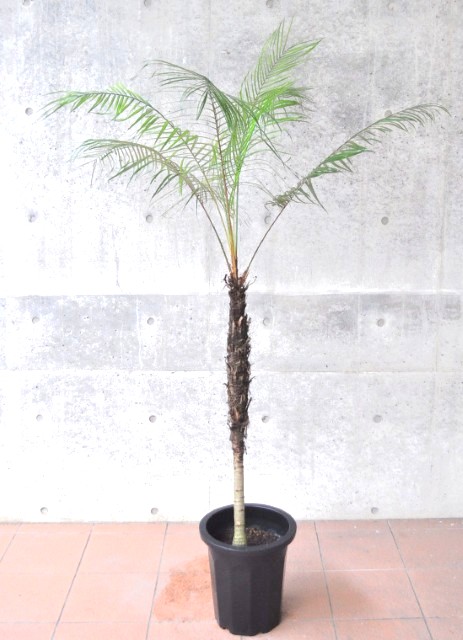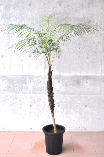 ブラジルヒメヤシはブラジル原産の希少なヤシ。小型なヤシで大きくなっても200cm程度。幹が細く、葉が繊細な優美なヤシです。