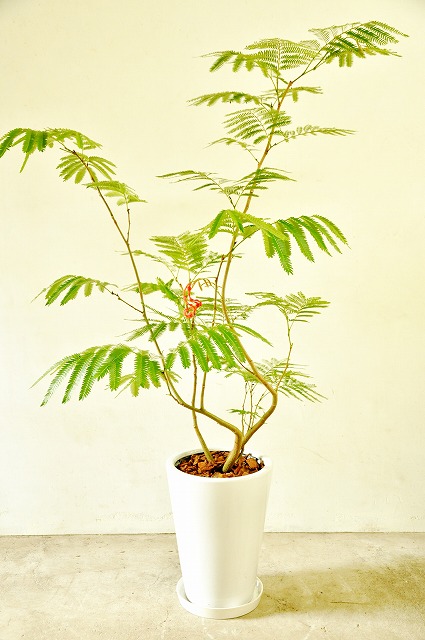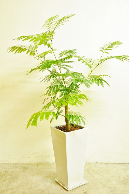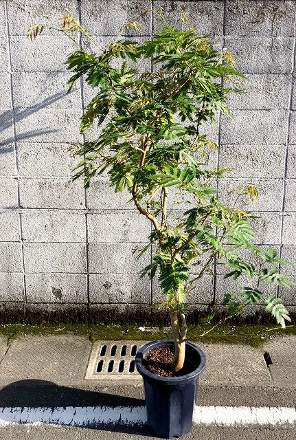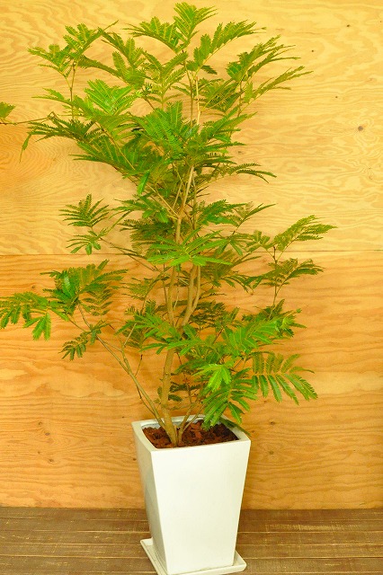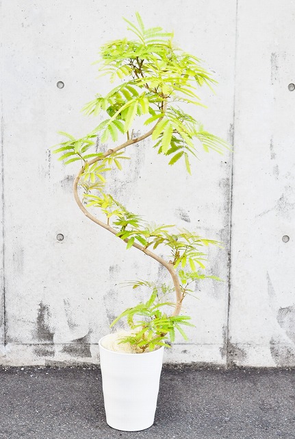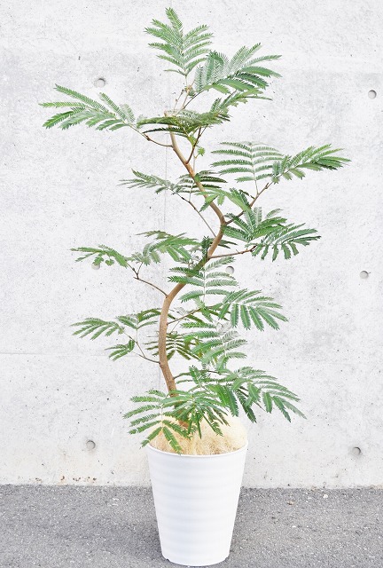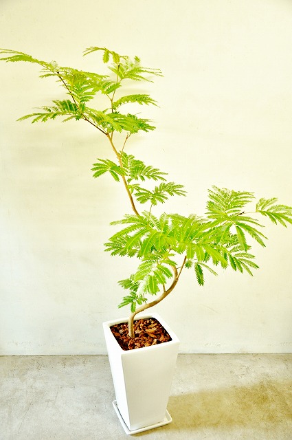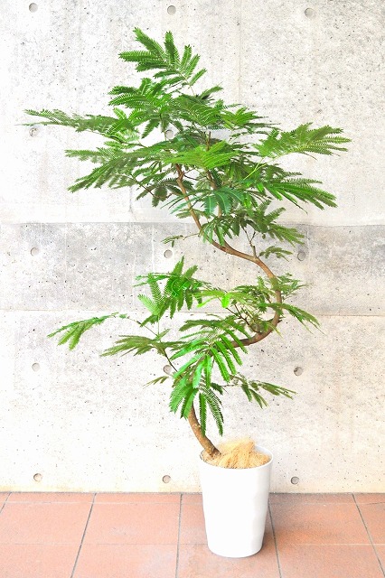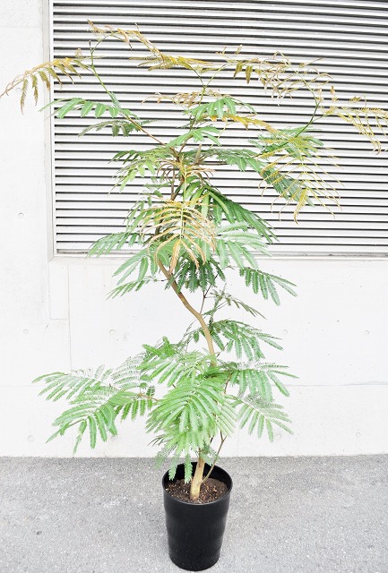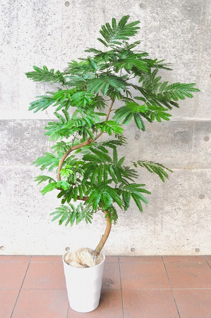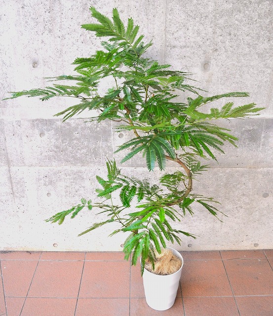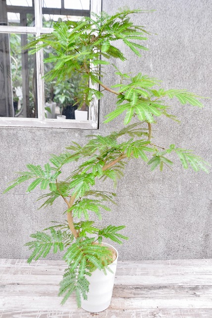 画像は実物商品です。緩やかな曲がりのある樹形のエバーフレッシュです。鉢サイズ:10号、樹脂製鉢植えです。他の画像1、他の画像2、他の画像3。