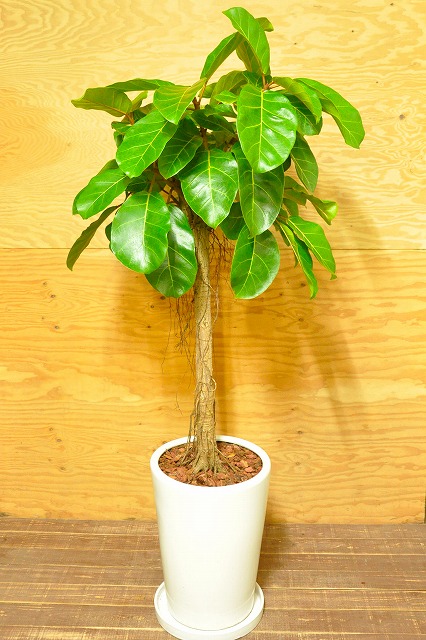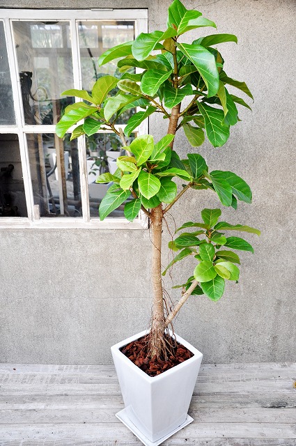 アフリカンプリンスは、まだあまり販売されていない希少なゴムの木の仲間です。原産地では保護植物として指定されていて、入手が困難となっています。アフリカンプリンスはカシワバゴムぐらいの厚みと、艶のある独特の葉をつけ(おうとつ、丸みを帯びる場合もあります。)、かっこいい樹形を形作ります。幹からは気根を垂らし、ワイルドな雰囲気もあります。ひげ(気根)をたくわえ、ターバンを巻いたかのような?まさにアフリカの皇帝のような存在感!サッカーW杯が行われた南アフリカのSOWETO(South Western Township[旧黒人居住区域] の略 )の広場にでも生えていそうな雰囲気もあるゴムの木。アフリカンミュージックが今にも聞こえてきそうです。