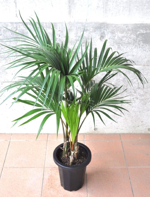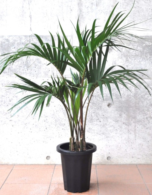 ケンチャヤシはアレカヤシと比べると、葉は緑が濃く、大きいイメージ。より南国の雰囲気があるヤシの木です。ケンチャヤシの葉先はしなやかに垂れ、南国、リゾートの雰囲気を醸し出します。ケンチャヤシは耐寒性、耐陰性があり、育てやすく強い観葉植物で、ホテルや、オフィス、店舗等様々な場所で多く利用されているのをよく見かけていただけると思います。産直にてハイクオリティなケンチャヤシをお届けします。
